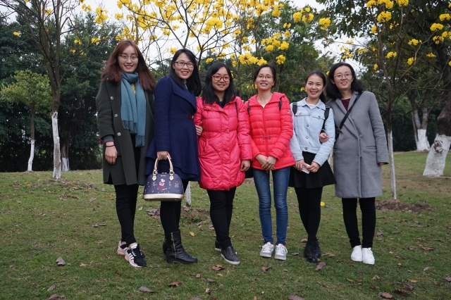 好雨知时节,当春乃发生。濛濛细雨中,教职工们依次参观了六脉清源广场、林荫广场、如荫草坪和休闲中心,绕着广州市最大的人工湖——白云湖边散步,一路上有说有笑,全身心地感受春天带来的温润气息。黄花风铃木在公园里特别显眼,在微风细雨中的摇曳姿态,引得教职工们纷纷与之合影,纪念这难忘的一刻。