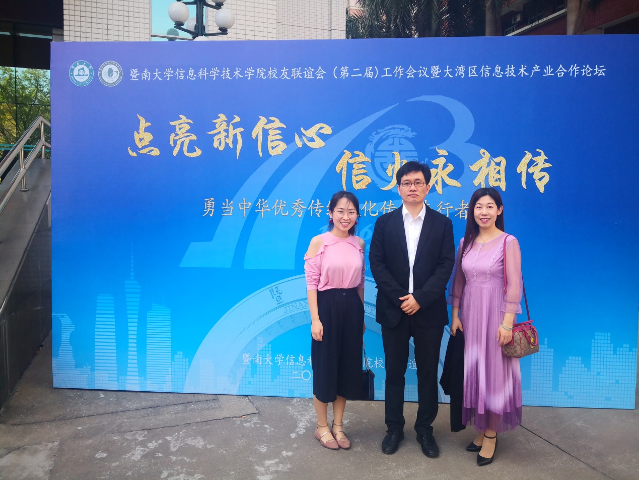 李莹理事长与我院方俊彬教授、校友工作秘书马悦合影