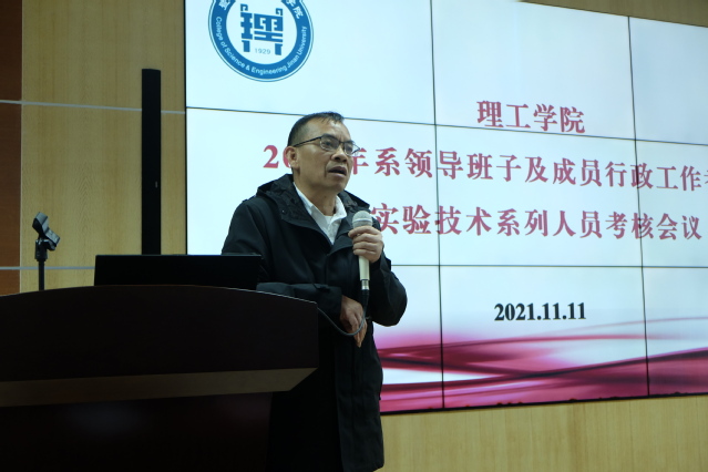 关柏鸥院长在讲话中指出,开展系领导班子及成员行政工作述职是切实落实学院“十四五”发展规划的重要抓手。通过开展考核,学院全面了解、客观评价各系过去一年的工作,这对于进一步增强系领导班子和班子成员的担当意识、责任意识、服务意识,促进各学科对未来长远发展进行战略思考,推动学院快速发展和“一流理工科”建设都具有重要意义。他强调,实验技术系列教师是学院人才队伍的重要组成部分,是高校实验教学和科研中不可缺少的主力军,实验技术系列教师的素质决定实验教学的质量和实验室的管理水平,希望各位实验员通过此次考核进行互相交流,进一步提升实验技术专业素养和管理水平,不断增强实验室安全管理意识。