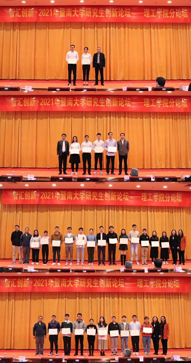 经评委和在场的全体研究生投票,论坛评出博士研究生李旭升、硕士研究生胡嘉漫获得一等奖,他们以出色的科研成果、卓越的演讲风采征服了在场观众的心。林东旭、刘国华、梁婉莉和林灏杨4名优秀的研究生获得二等奖,参加各系汇报的另外25名研究生获得三等奖。与会的学院和教学系领导为获得本次论坛一、二、三等奖的研究生颁发了奖状。
