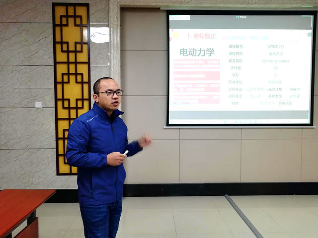 首先,刘鹏副教授、代世波副教授分别以《电动力学》《激光原理与技术》为题目进行了15分钟的现场讲课并展示了教学创新成果报告。两位参赛老师高度重视本次培训,对讲课内容做了认真、充分的准备,语言表达清晰流畅,展示较强的了教学和科研创新能力。