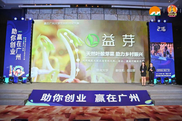 2021年12月14-15日,第十届“赢在广州”暨粤港澳大湾区大学生创业大赛总决赛在广州天河希尔顿酒店上演巅峰对决。澳门新葡萄新京6663食品科学与工程系港澳台侨学生创新创业项目“益芽——天然叶酸芽菜助力乡村振兴”在本次大赛中凭借出色的项目和优异的表现,荣获“优胜奖”以及8000元创业扶持基金,项目指导老师王超荣获“伯乐奖”。“益芽”获奖项目参赛成员有:谢佳莉(中国香港)、岳喆雯、易灵、张佳淼、黄雅琳、陈婉琪、张钰琪、李倩颖。