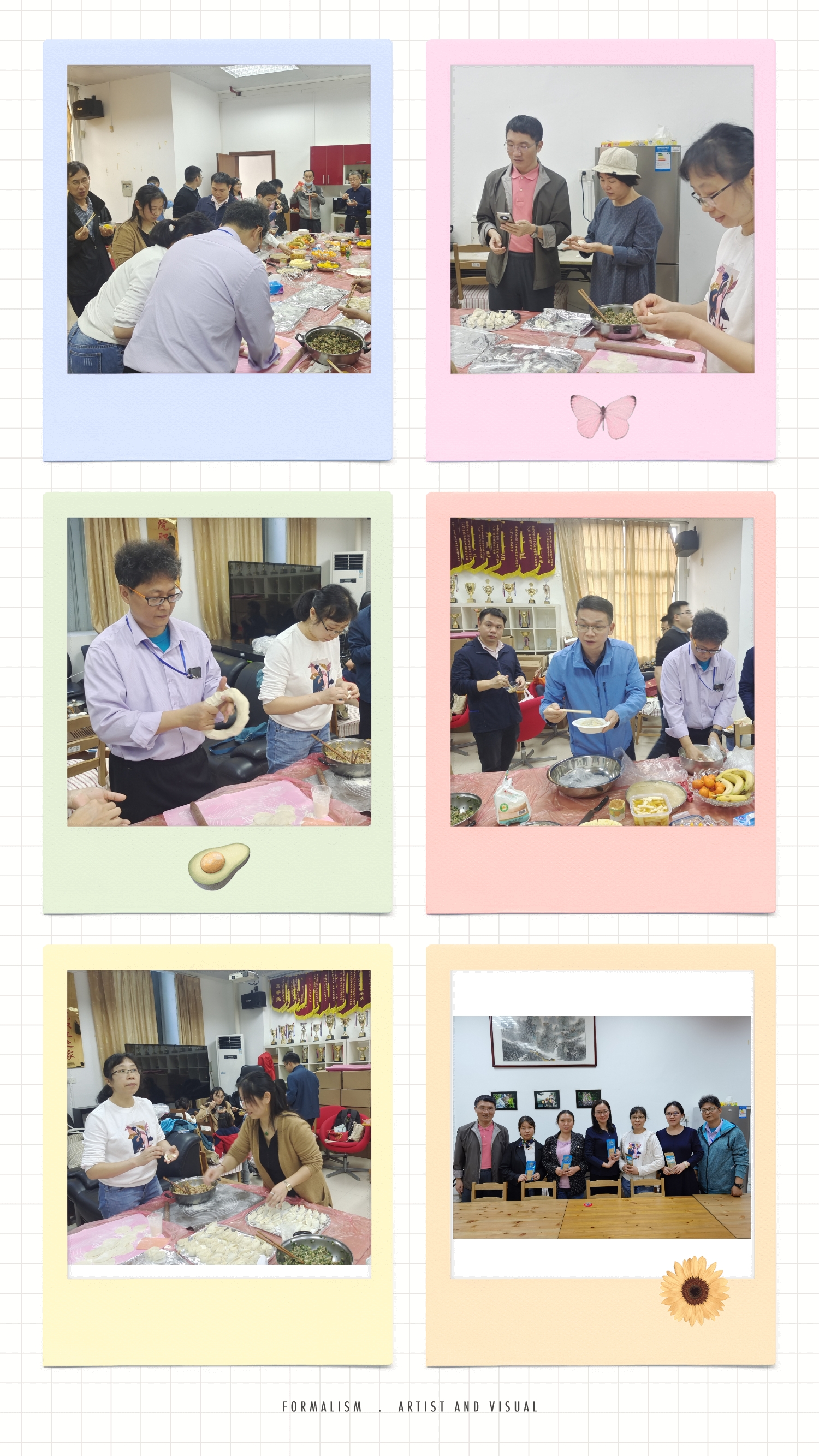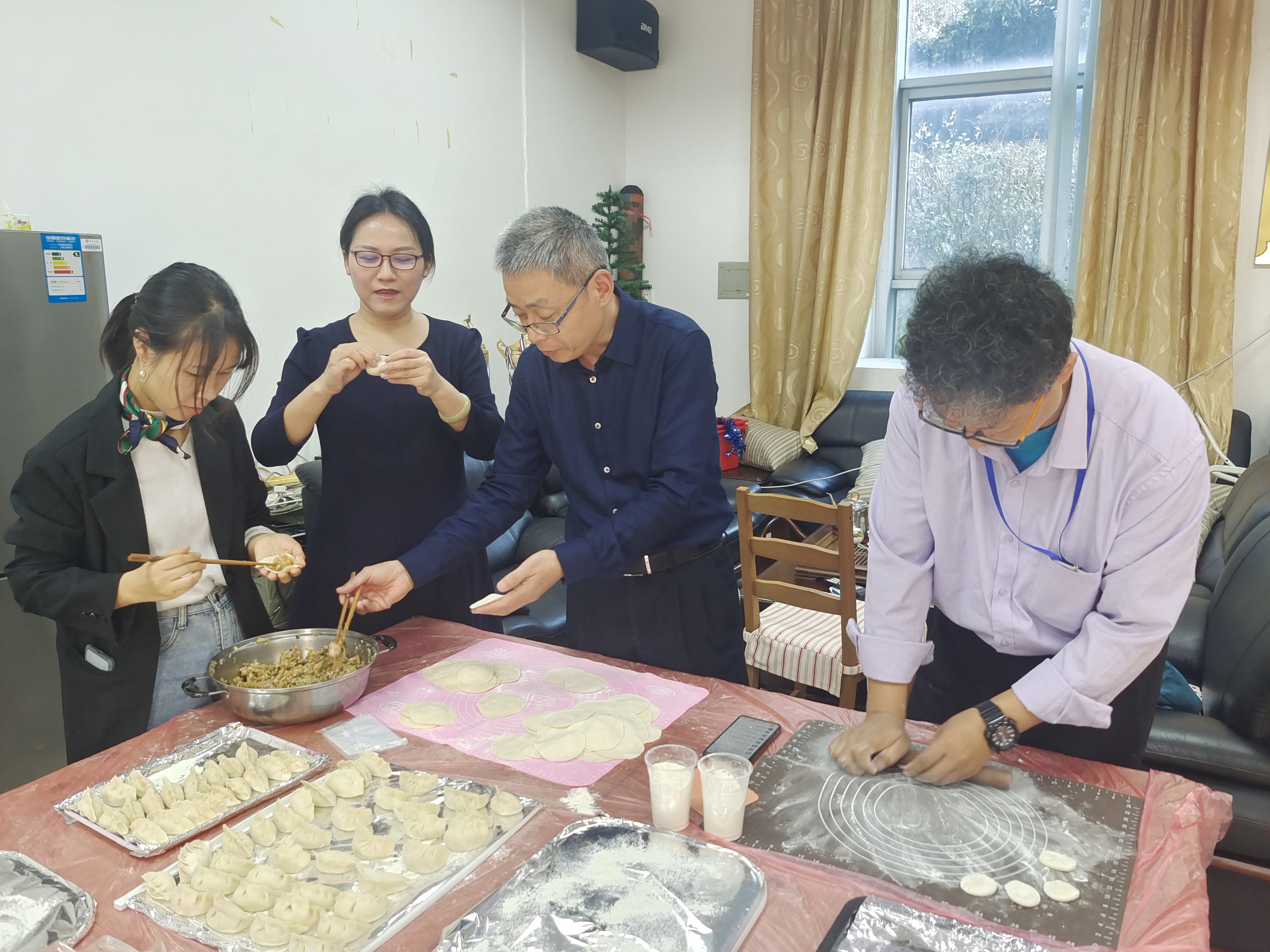 清水飘芙蓉,元宝落玉盘。学院领导以及在场的男教工们也一起参与到包饺子活动中,大家分工协作,各显身手,和面、擀皮、包馅儿,很快就包出一盘盘美观饱满、形态各异的饺子。待到热气腾腾、香喷喷的饺子端上桌时,大家围在一起分享劳动的成果,在享受节日快乐的同时,相互交谈,分享工作或者生活上的趣事,每个人的脸上都洋溢着幸福的笑容,整个职工之家充满了欢声笑语,欢乐的气氛达到了高潮!
