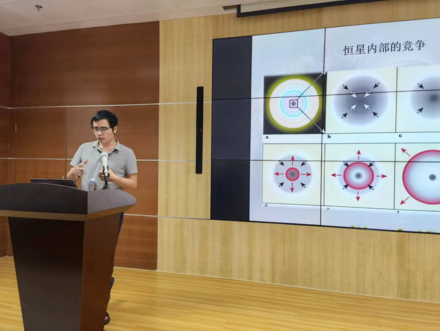 张承勇副教授为研学营第7队的同学们作了题为《黑洞动力学与引力波》的科学讲座。他通过介绍黑洞的形成、特性、分类、历史,对黑洞进行了阐释,向营员们尽情展示黑洞动力学和引力波的无穷魅力。讲座后,他鼓励同学们只有踏实学习,才能在未来的各个平台施展才华,为祖国做出贡献。