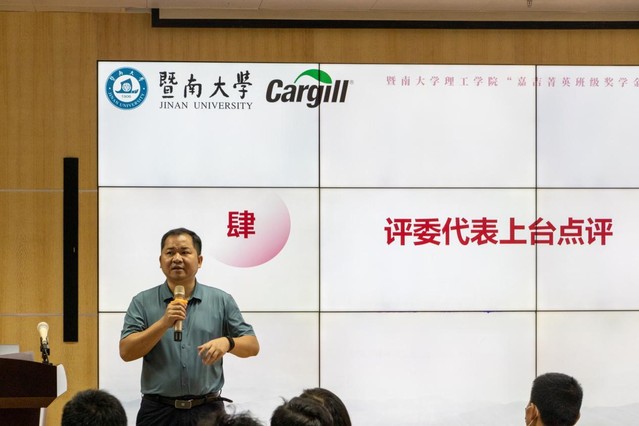 首先,欧阳建中为此次评选活动致辞。他指出,农业安全、粮食安全是国家安全的重要基础,保障农业安全的关键在于人才,暨南学子践行“忠信笃敬”的校训,与嘉吉公司“以人为本,正确行事,志存高远”的核心价值观高度契合,希望校企双方继续巩固深化合作,实现创新驱动,推动共赢发展。