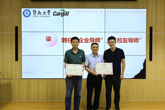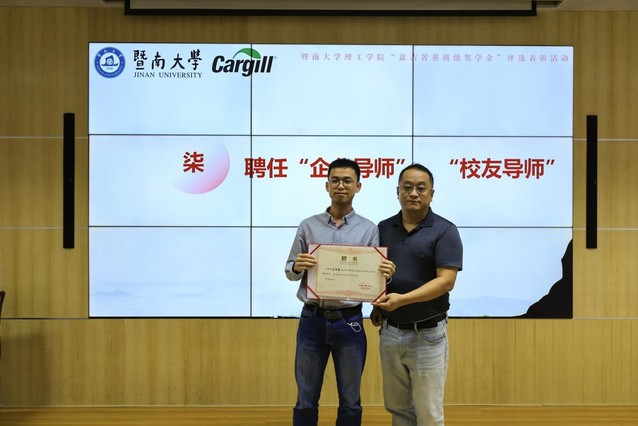 (学院向嘉吉公司颁发“特殊贡献奖”,聘请“企业导师”、“校友导师”)
