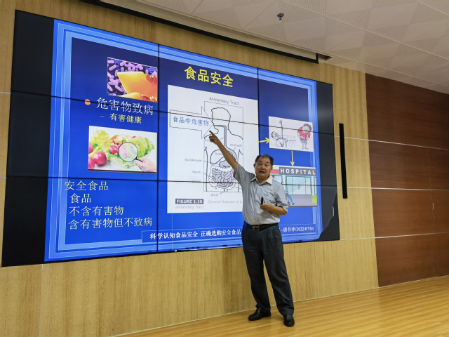唐书泽教授为研学营的同学们作题为“科学认知食品安全,正确选择安全食品,有效甄别食品谣言”的科学讲座。唐教授和蔼亲切,讲课生动有趣,他通过新闻热点报导和生活中的食品图片等形式,详细介绍了食品、功能保健食品、药品之间的区别和联系,使同学们清晰了解到食品质量、食品营养及食品安全的内涵和外延。他希望同学们通过本次讲座的学习,在一定程度上认识到食品安全,辨别谣言,并鼓励同学们踏实学习,将来在食品安全方面进行有益的探索。