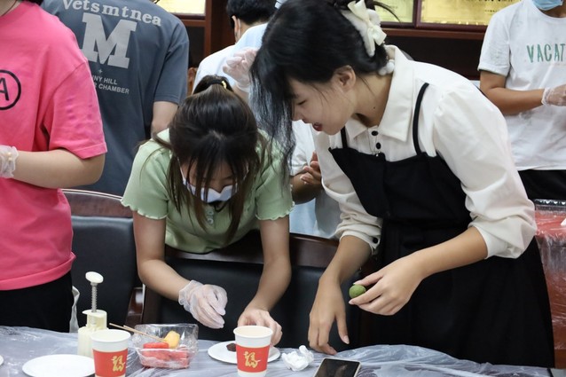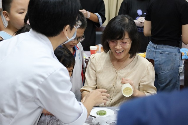 (亲手体验月饼制作,师生们乐在其中)