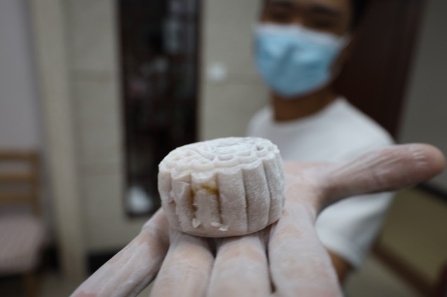 (黄才欢副主任现场演示讲解月饼制作)