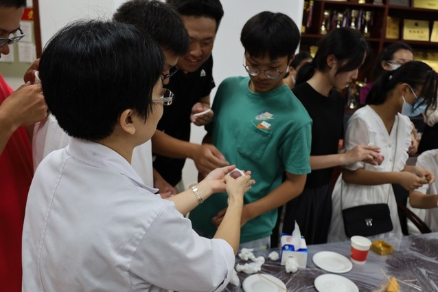 孙玉环亲切的话语让同学们感受到来自师长的关爱。郑洁为学生们强调了活动中注意微生物安全的问题,黄才欢则亲自为学生们示范月饼的制作方法。