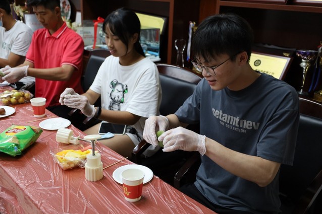 “小饼如嚼月,中有酥与饴”。9月9日晚,在蒙民伟理工楼114室,理工师生欢聚一堂,亲手体验制作月饼,品尝鲜果美食,共同庆祝中秋佳节。