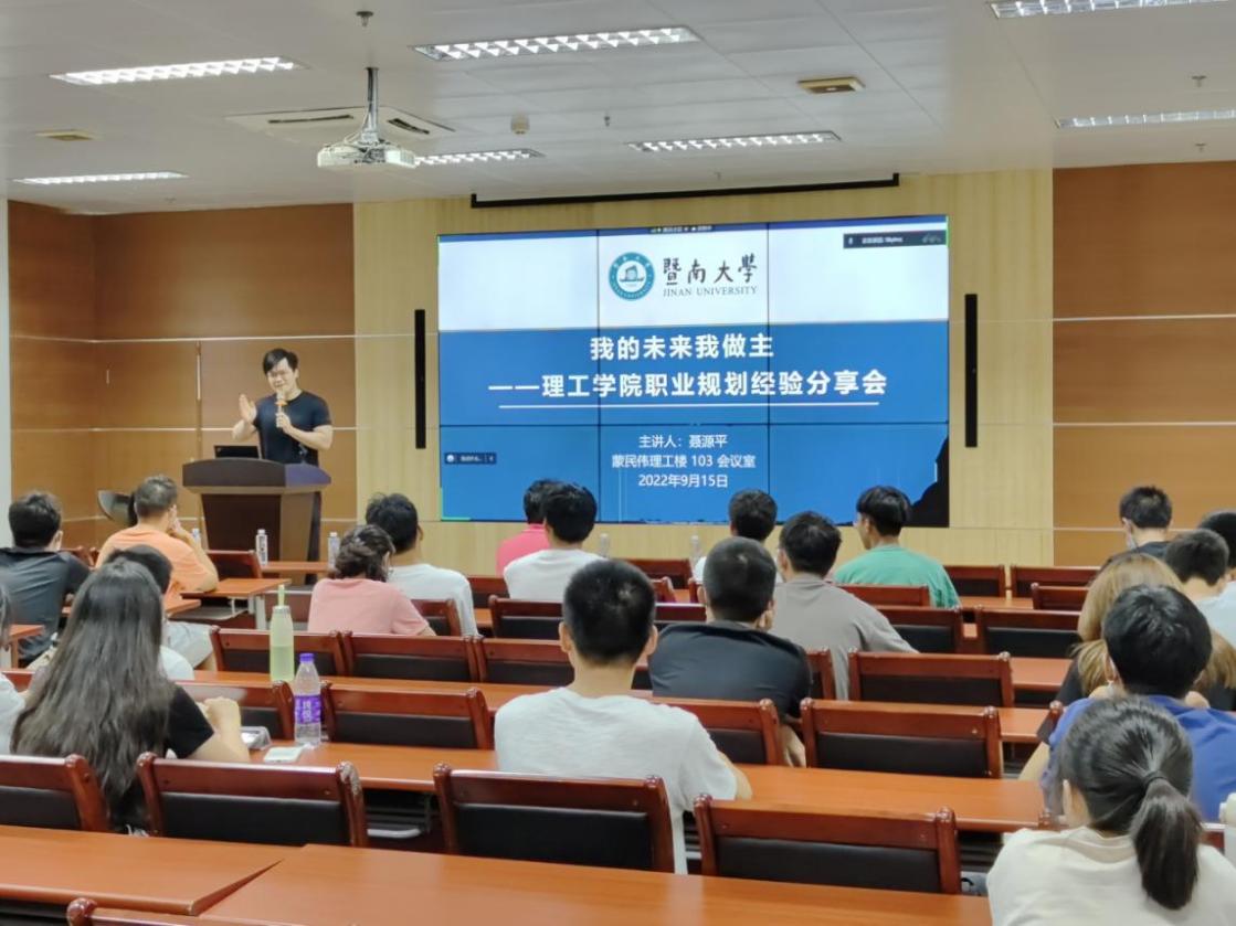9月15日,澳门新葡萄新京6663在蒙民伟理工楼103会议室举办“我的未来我做主”职业规划分享会,特邀我院校友会副会长聂源平作为主讲嘉宾。分享会线上、线下同步举行,澳门新葡萄新京6663党委副书记孙玉环、光电工程系党总支书记曾庆慧出席会议,大会由孙玉环主持。