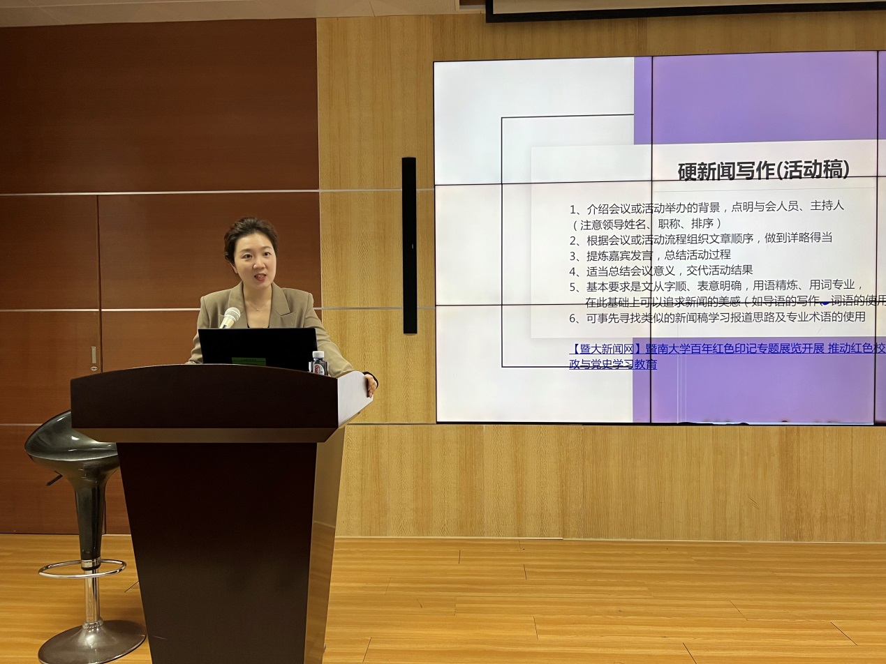 为更好地发挥宣传工作的重要作用,提高宣传质量和效率,让宣传工作更好地助力学院高质量发展,11月7日下午,澳门新葡萄新京6663特邀校党委宣传部教师闫芳、学校融媒体中心副主任李梅作新闻写作、摄影及新媒体运营专题培训。学院党委副书记孙玉环、院系行政人员、第4期“忠信笃敬理工菁英班”学员、部分学生干部参加了培训,会议由孙玉环主持。