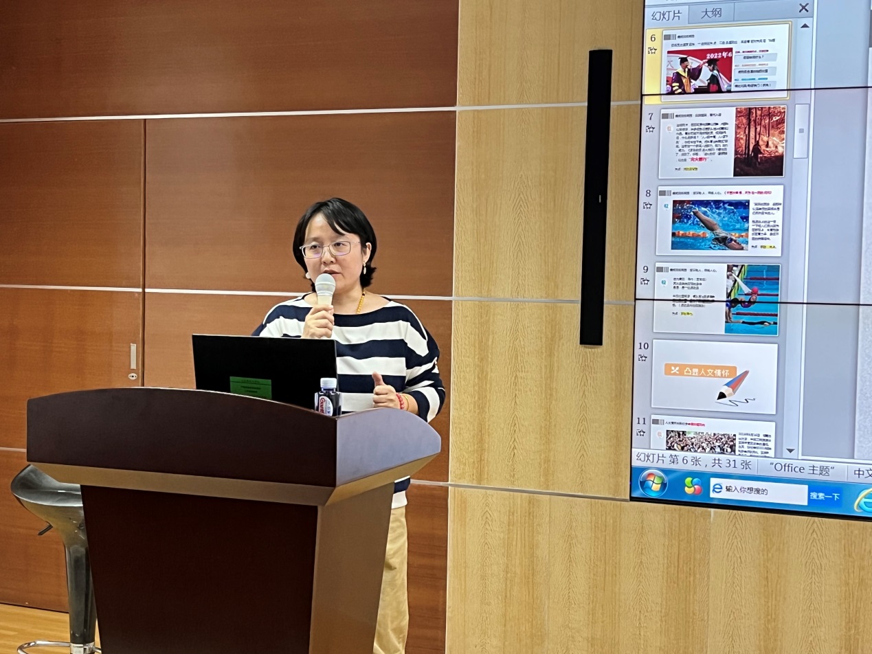 闫芳以“新闻摄影与写作”为主题,结合个人丰富的工作实践经验,从如何捕捉现场画面、凸显人文情怀、增加作品信息量、选取所需照片、新闻写作技巧五个方面,深入浅出地讲解了校园新闻写作与摄影的技巧。她借助大量生动的新闻图片实例,从校园日常会议、领导调研活动、师生文体活动拍摄及图片后期处理等方面讲解了校园新闻摄影的注意要素,分享了背景选取、光圈调节、人物表情动作协调、结构选取比例的适配、黄金抓拍时间的掌握等拍照技巧。