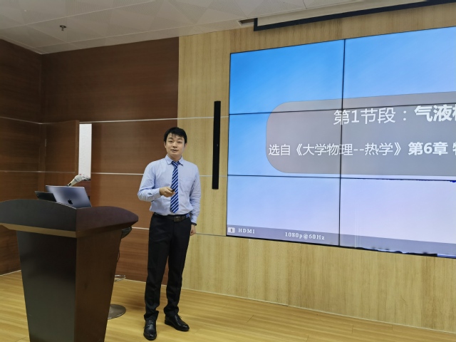 物理学系操宣敏运用生动有趣的多媒体课件讲授“大学物理”,课堂内容紧扣安德鲁斯实验与范德瓦耳斯方程的理论预言的异同,通过理论结合实验进行分析,充分展现了理论和实验相辅相成,相互促进的科学思想,引导同学们树立正确的科学思想观和价值观。