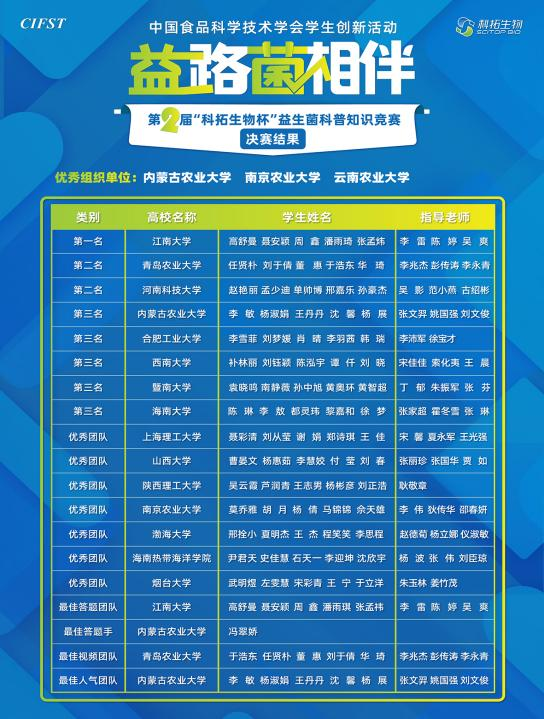 (第二届“科拓生物杯”益生菌科普知识竞赛决赛结果)