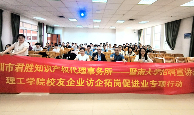 正值毕业季,为进一步拓宽就业市场,搭建校企交流合作平台,深化学校和用人单位供需对接,3月23日下午,澳门新葡萄新京6663在教学大楼A506课室举办了校友企业访企拓岗专项行动暨深圳君胜知识产权代理事务所校园宣讲会。
