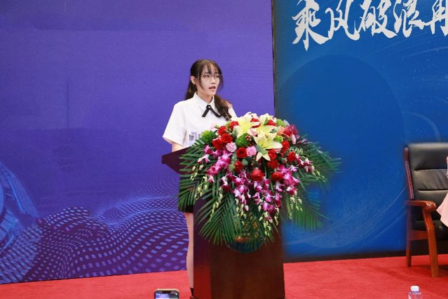 2023级应用物理专业白佳仪同学代表新生发言。白佳仪对未来四年的大学时光做出了详细规划。首先,找准目标,确定方向,趁青春大胆尝试;其次,拒绝躺平,学会自律,只有奋斗才能不负青春;结交新朋友,走出舒适圈,希望能遇见一群志同道合的好友。