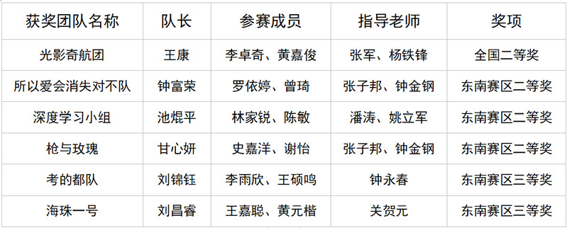 东南赛区二等奖“深度学习小组”获奖师生合影