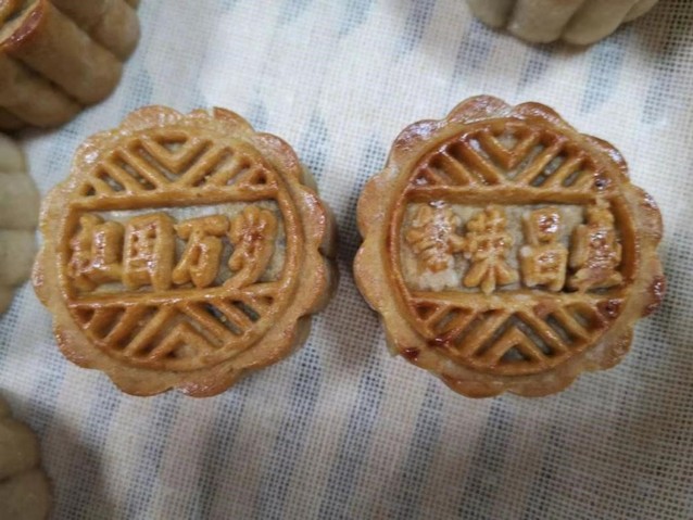 活动室里香飘四溢,欢声笑语。同学们制作出印有“祖国万岁”“繁荣昌盛”“欢度国庆”等字样的月饼,表达了对伟大祖国的深情祝福。