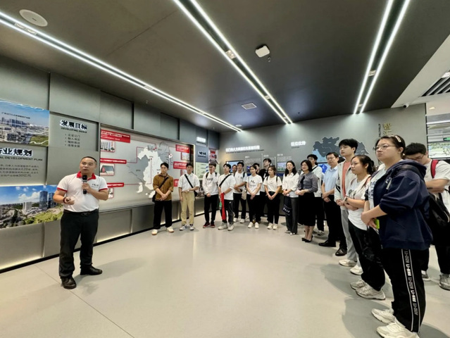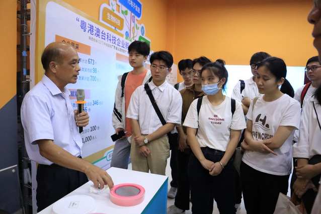 珠西创谷是研学活动的首站,作为省级粤港澳科技企业孵化基地,带动起江门市与港澳地区的深度合作,创谷将为高校毕业生在江门创业提供技术、商务、金融、咨询等全方位支撑。在基地首席执行官黄松华博士的带领下,同学们参观了产业园展厅和江港澳科技转移中心,大家看到许多科技转化产品,深入地了解了珠西创谷在科技创新、产品研发以及企业孵化等方面的发展成果,江港澳科技转移中心则展示了江门与港澳的经济技术合作成果,吸引港澳学生留在江门发展。