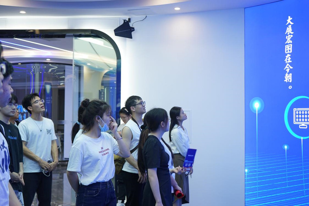 (同学们参观珠西创谷创新创业基地的科研成果)