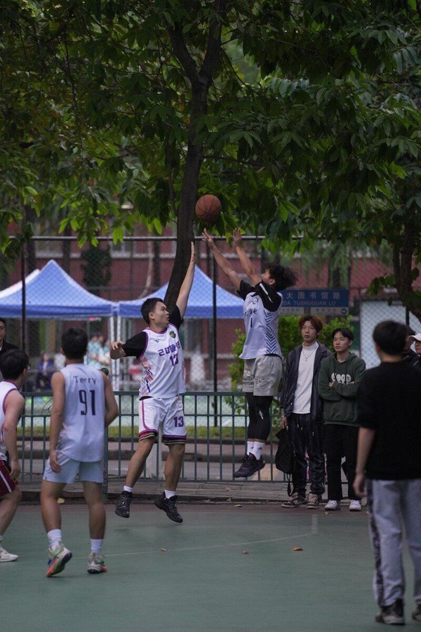 随着裁判的一声哨响,比赛正式开启。传球、过人、投篮,所有动作一气呵成,令人赞叹不已;快攻、突破、防守,队员之间配合默契,每一个转身都在奋力挥洒汗水。球员们矫健的身姿在篮球场上肆意穿梭,攻防转换扣人心弦,投出一个个精彩的进球,赢来场下阵阵欢呼声。双方球员切磋篮球技术,增进彼此间的了解,形成“友谊第一,比赛第二”的良好氛围。