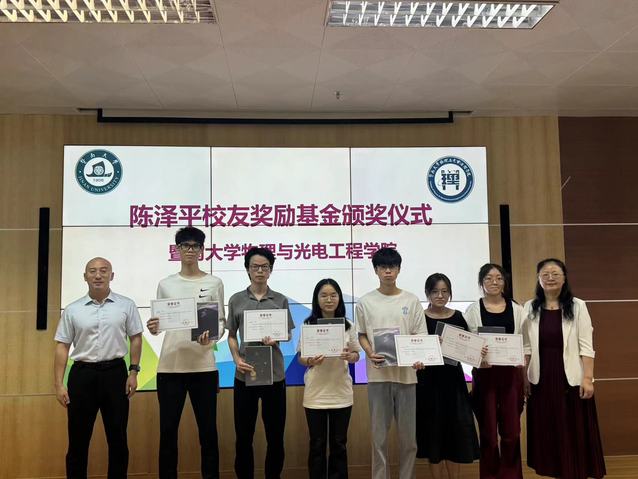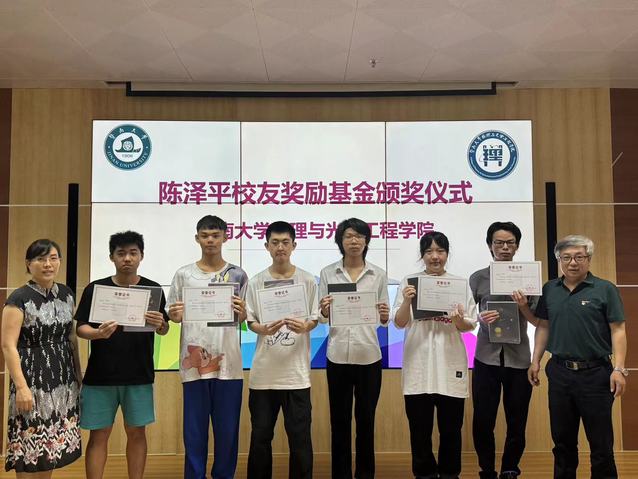 4月22日,物理与光电工程学院举行了“陈泽平校友奖励基金”颁奖大会,大会表彰了2023年获得该项基金奖励的老师和学生。学院党委书记黄睿、副书记孙玉环、物理学系党总支书记幸江涛,获奖师生及2023级本科生代表参加了大会。大会由物理学系系主任孟辉主持。