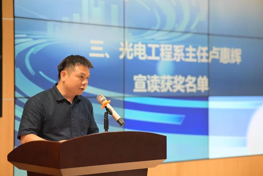 6月6号下午,澳门新葡萄新京app官网第二届光电设计竞赛闭幕式在蒙民伟理工楼A05举行。澳门新葡萄新京app官网团委书记张高祥、物理与光电工程学院党委书记黄睿、副书记孙玉环、副院长关贺元,光电工程系系主任卢惠辉、系党总支书记曾庆慧,麓邦光电华南区销售经理孟德鑫及竞赛评审专家、参赛同学等参加了活动。闭幕式由曾庆慧主持。