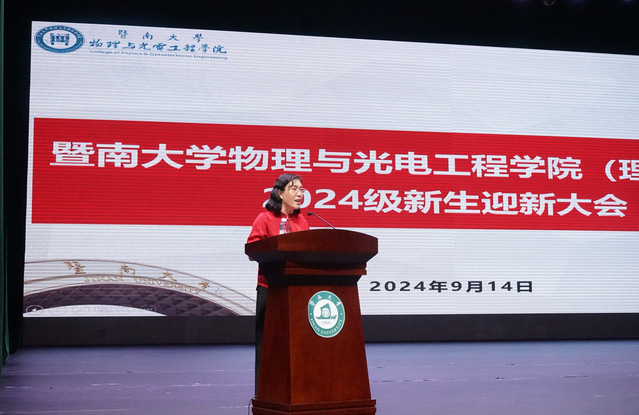 9月14日下午,澳门新葡萄新京app官网物理与光电工程学院(澳门新葡萄新京6663)在学校大礼堂举行2024级新生迎新大会。物理与光电工程学院(澳门新葡萄新京6663)党政领导、各系、研究院党政领导、学院各办公室主任、新生班主任、学生辅导员等出席会议,2024级本科生、研究生共计530人参加大会。党委副书记孙玉环主持会议。