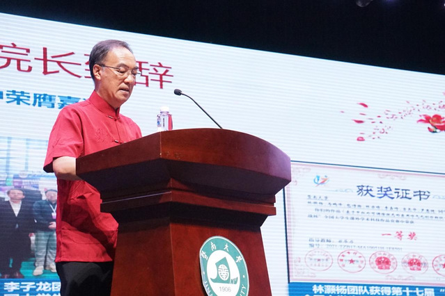 围绕大学“学什么”“怎么学”,他向同学们提出了三点建议:一是立鸿鹄志,厚植爱国情。作为新时代的青年大学生要胸怀天下,要将个人的理想追求融入到国家和民族的事业之中,要将论文写在祖国的大地上,把科技创新成果应用在实现现代化的伟大事业中,用实际行动诠释“请党放心,强国有我”的青春誓言。二是励精求进,锤炼真本领。同学们要勇于探索未知,不懈追求学术精进,在知识的海洋中汲取智慧的浪花,在实践中锤炼过硬本领,让每一分努力都成为勇攀科学高峰的坚实基石。三是无惧险阻,扬帆永向前。面对挑战与困难,要保持坚韧不拔之志,勇于乘风破浪,即使前路漫漫,亦要勇往直前,不断超越自我,沐光而行,争取学有所成。