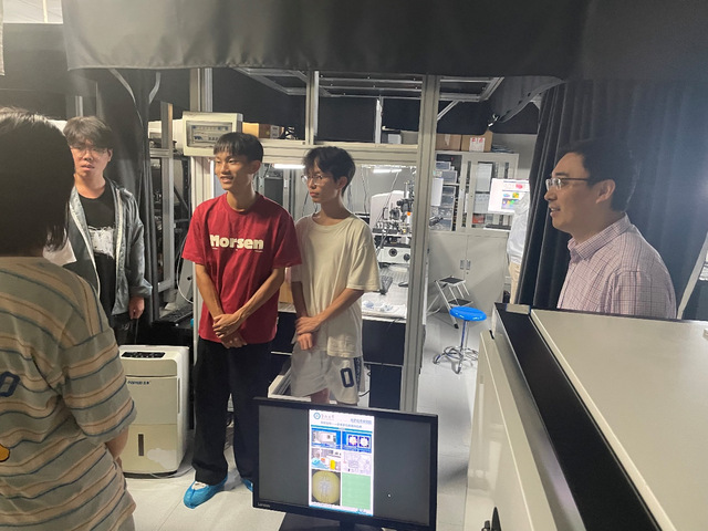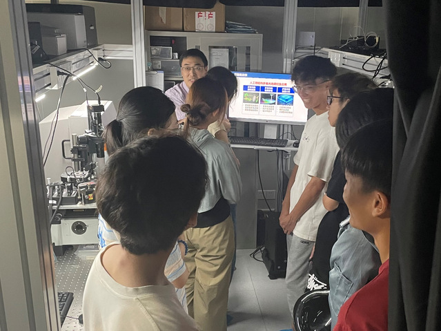 李向平带领同学们参观了纳米光子学及器件实验室,同学们认识了许多实验室内精密仪器及其用途,对于专业知识有了进一步的了解。李向平详细介绍了课题组在该领域中的最新科研成果和未来研究方向,并强调学院高度重视本科生的科研实践能力培养,鼓励同学们积极参与到科研活动中来,通过实践学习,提升自身的专业素养和创新能力。学院也将不断优化科研资源配置,为同学们提供更多的科研实践机会。