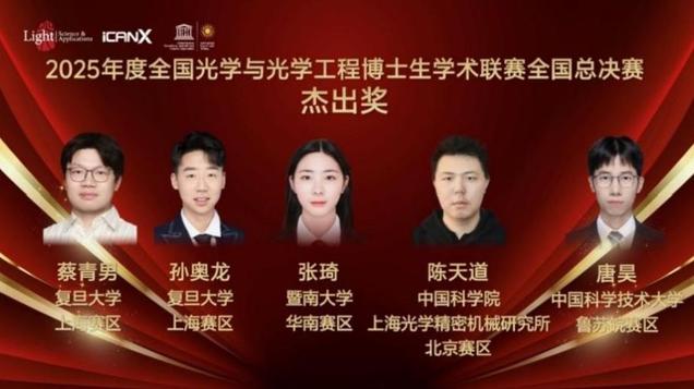 以上荣誉不仅彰显了我院博士生卓越的科研能力,更体现了学院在光学领域的深厚积淀和人才培养的显著成效。