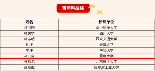 青年科技奖颁奖照片(右3为辛洪宝教授)