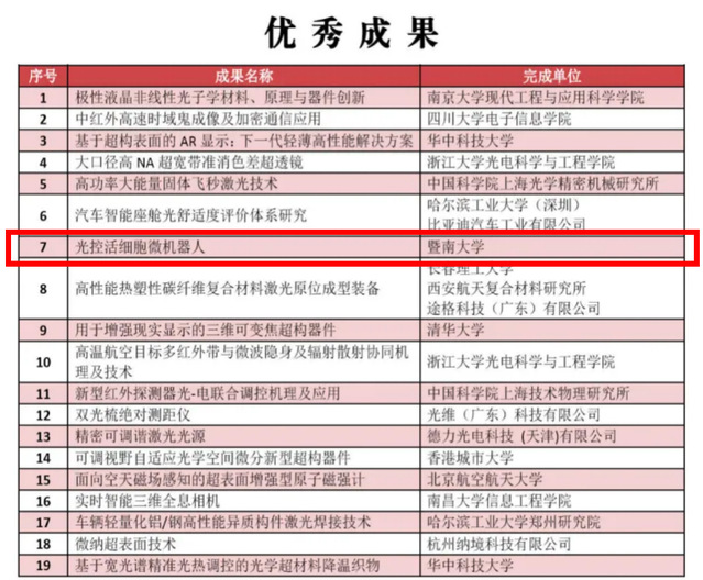 8月15-17日,2025年光学工程前沿交叉科学大会在金华召开,会上公布了“2025年光学工程前沿交叉优秀成果”入选名单。辛洪宝教授负责的生物光子学团队的系列成果“光控活细胞微机器人”入选。本次成果面向光学工程及交叉领域产业链的“新材料、空天科技、绿色能源、脑机交互与医工交叉、量子计算与人工智能、极微观、超快超强”七大类新产品及新应用领域全产业链条,向全国公开征集了2021-2025年科技成果项目共63项,经学会专家组评审,最终有19项入选优秀。