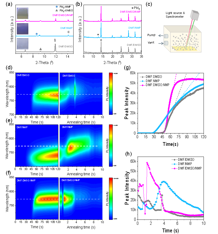 简言之,该研究深入揭示了前驱体溶剂对钙钛矿结晶动力学的关键调控机制,阐明了配位竞争与过饱和速率平衡对薄膜成核与生长过程的影响规律。该工作不仅为钙钛矿薄膜的可控制备提供了科学依据,也为实现钙钛矿光伏从实验室走向规模化制备提供了一种普适性的技术解决方案。