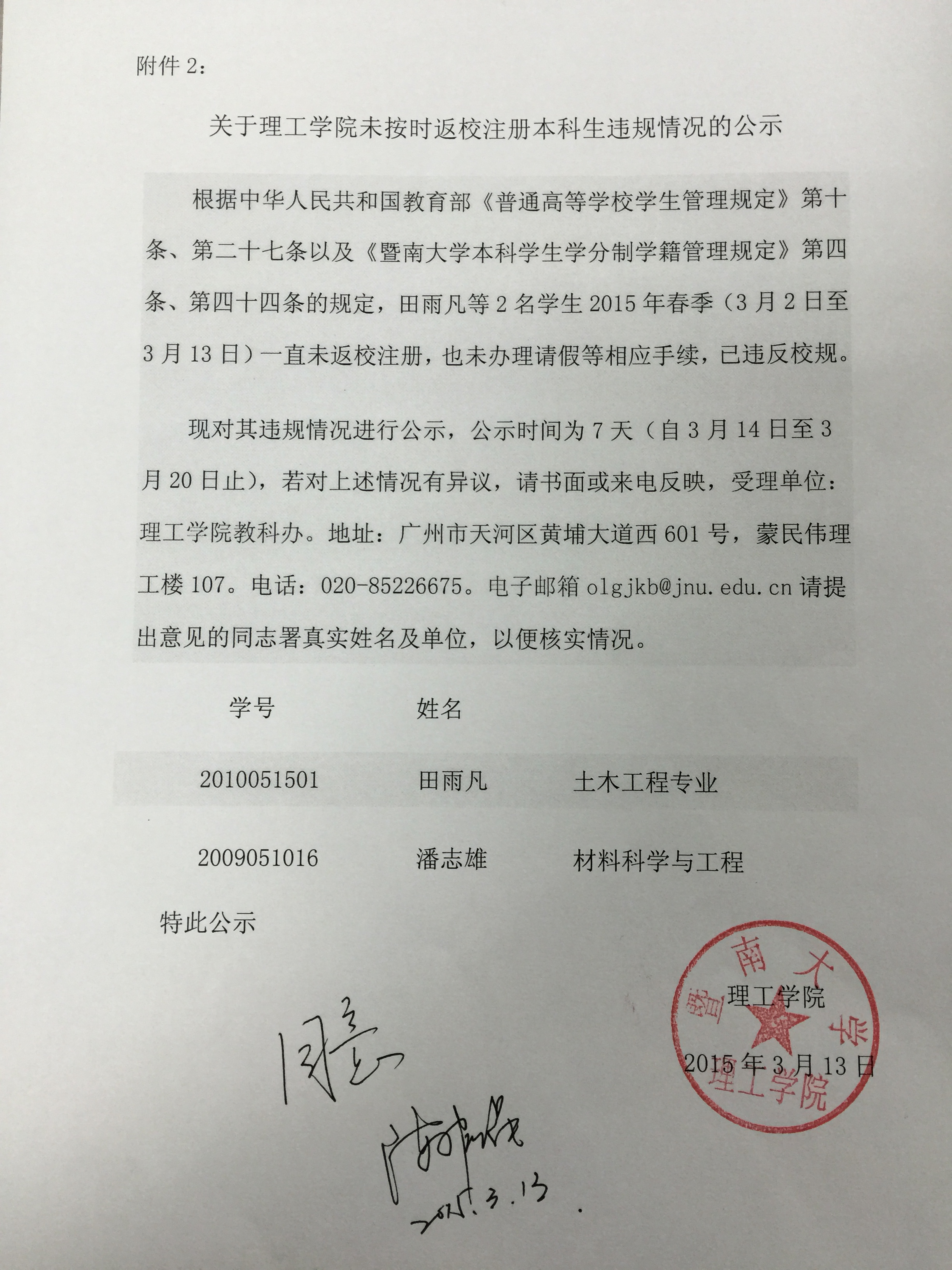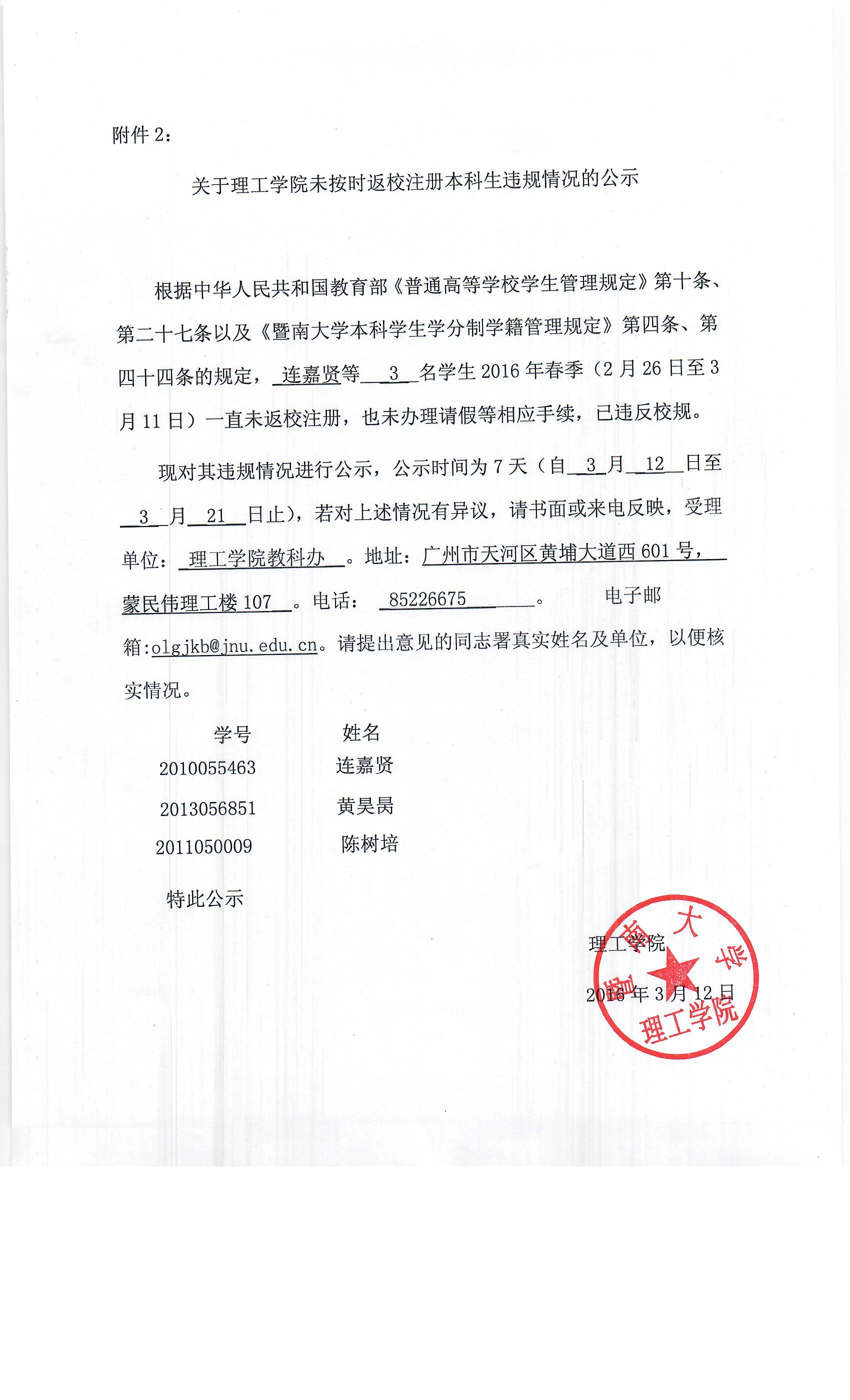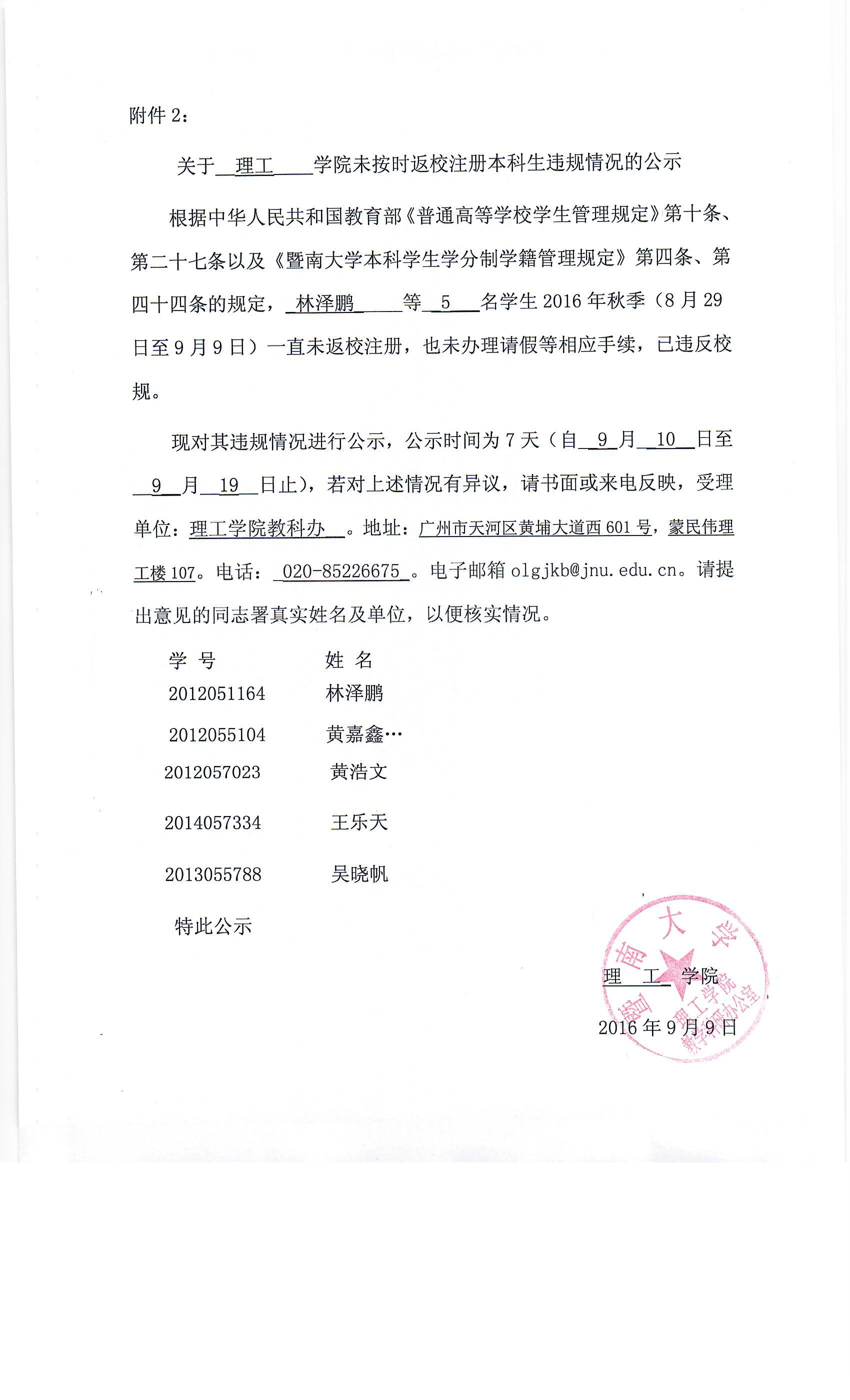 关于澳门新葡萄新京6663未按时返校注册本科生违规情况的公示