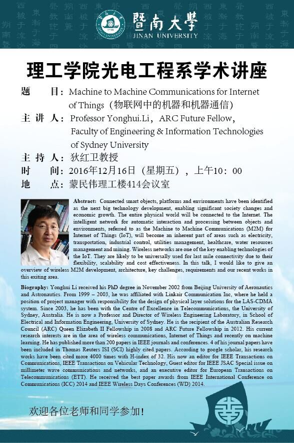 澳门新葡萄新京6663光电工程系学术报告