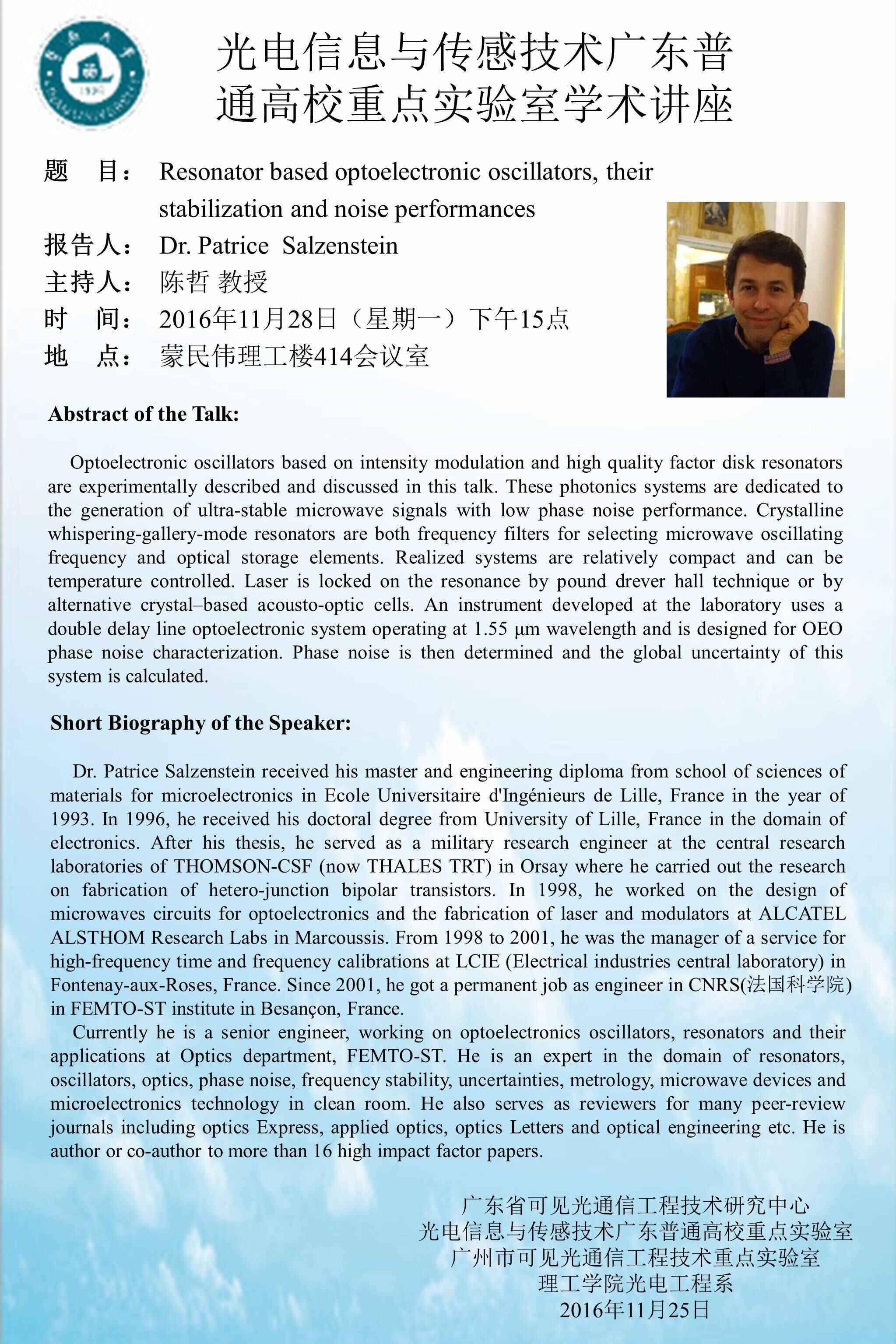 光电信息与传感技术广东普通高校重点实验室学术讲座