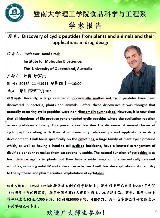 澳门新葡萄新京6663食品科学与工程系学术报告