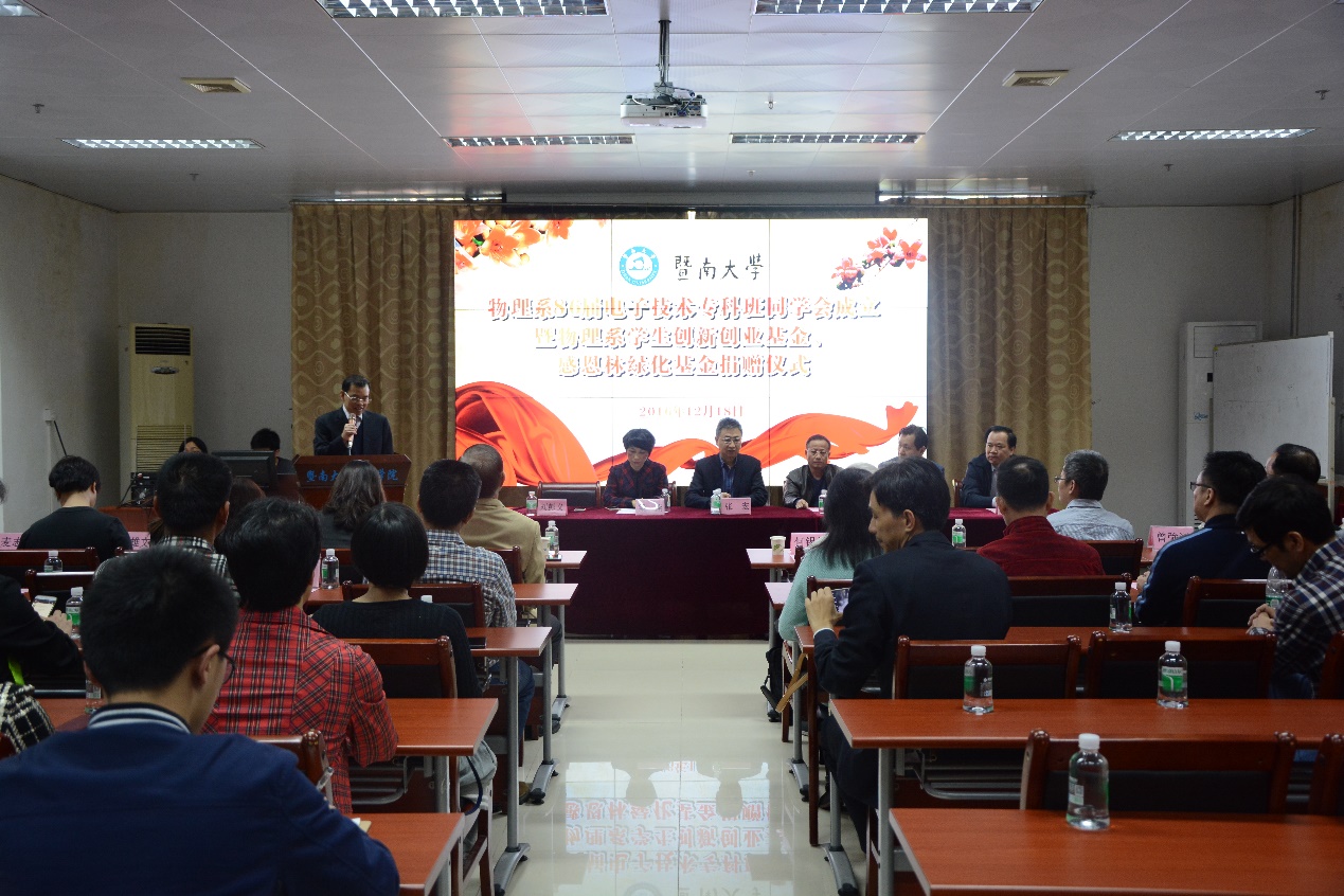 功在当代,树木更树人;利在千秋,情深义更深--记澳门新葡萄新京6663物理系86届电子技术专科班同学会成立暨物理系学生创新创业基金、感恩林绿化基金捐赠仪式