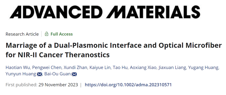 物理与光电工程学院关柏鸥教授团队在Advanced Materials发表光纤肿瘤检测与光热治疗重要成果