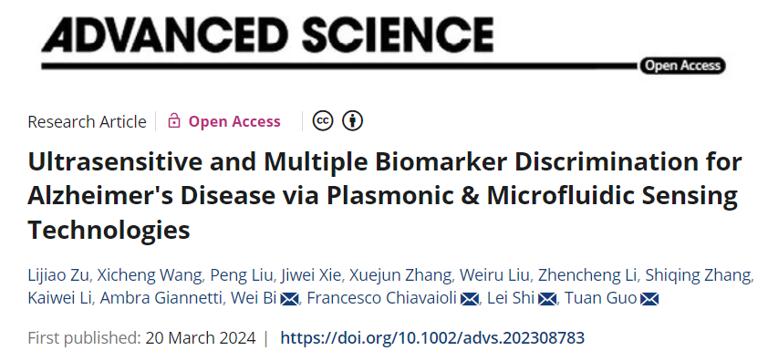 物理与光电工程学院郭团/药学院师蕾/澳门新葡萄新京app官网附属第一医院毕伟合作在Advanced Science发表阿尔茨海默病早期检测研究成果