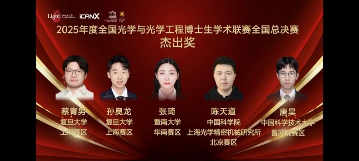 我院博士生张琦斩获2025年光学与光学工程博士生学术联赛全国总决赛杰出奖