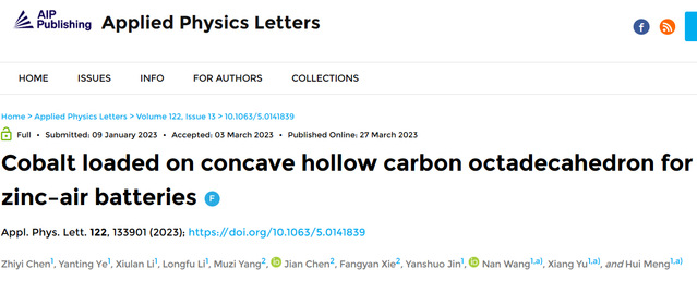 近日,澳门新葡萄新京6663物理学系2019级本科生陈智毅在物理学Top期刊Applied Physics Letters上发表题为“Cobalt Loaded on Concave Hollow Carbon Octadecahed...