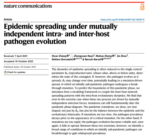 澳门新葡萄新京6663物理学系张希昀副教授联合国际合作团队 在Nature Communications发表研究成果:随机演化作用下 流行病传播动力学的理论新框架