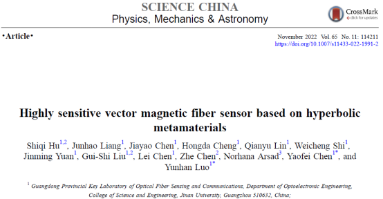 澳门新葡萄新京6663光电工程系罗云瀚团队在光纤磁场传感研究方面取得重要进展