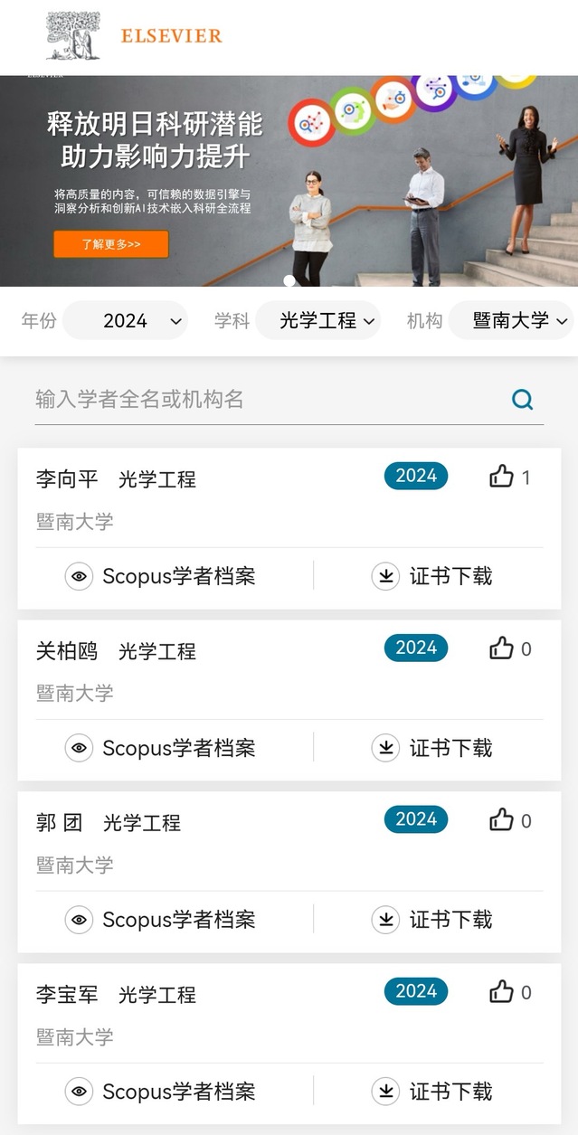 喜报| 物理与光电工程学院(澳门新葡萄新京6663)4位学者荣登爱思唯尔 “2024年中国高被引学者”榜单